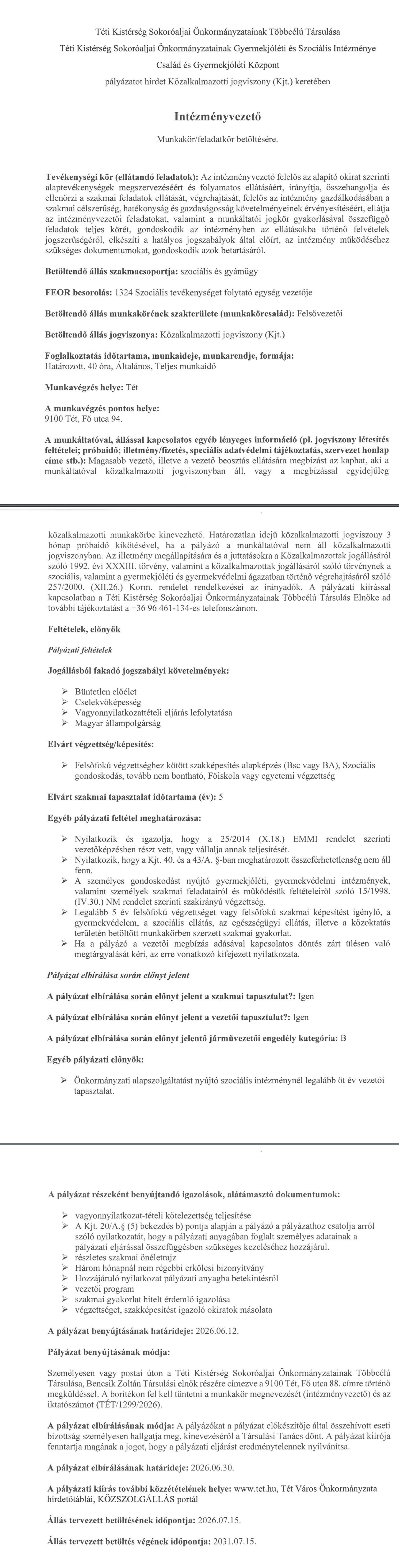A Család és Gyermekjóléti központ intézményvezetői pozícióba pályázókat keres